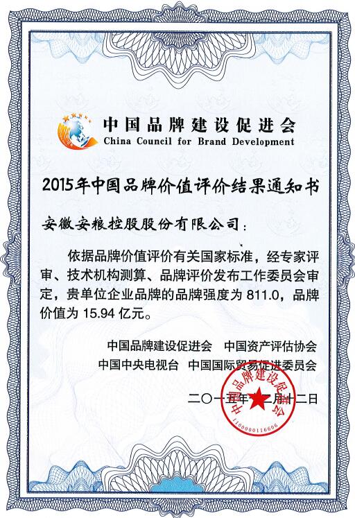 2015年中國品牌價(jià)值評(píng)價(jià)結(jié)果