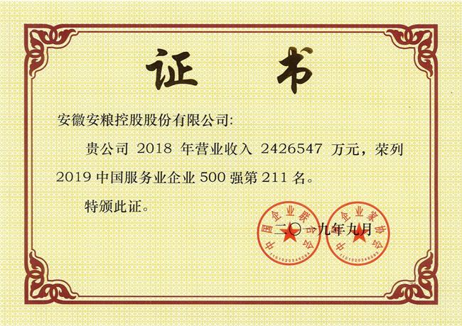 安糧控股位列2019中國服務業(yè)企業(yè)500強第211位