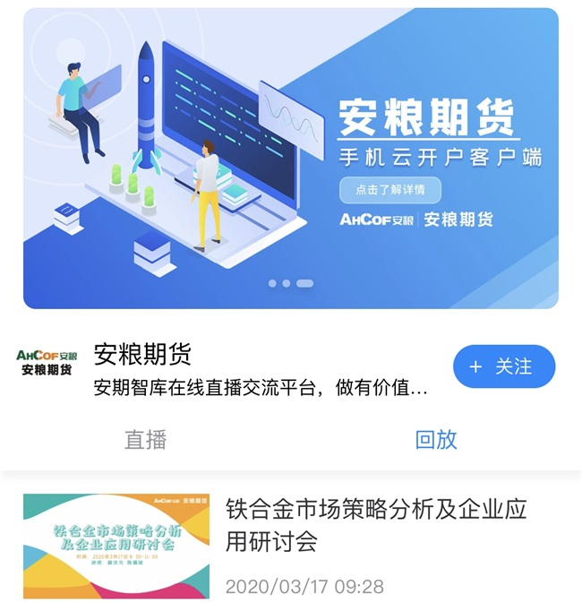 3月17日,安糧期貨利用網(wǎng)絡(luò)直播平臺(tái)召開(kāi)“鐵合金市場(chǎng)策略分析及企業(yè)應(yīng)用研討會(huì)”,這已經(jīng)是自疫情發(fā)生以來(lái)安糧期貨舉辦的第13場(chǎng)線上營(yíng)銷會(huì)議,有效解決了日常營(yíng)銷會(huì)議無(wú)法開(kāi)展的難題。據(jù)統(tǒng)計(jì)已有累計(jì)超過(guò)11000人次參與了觀看,得到業(yè)界廣泛好評(píng)。