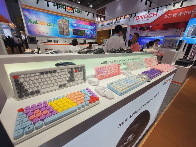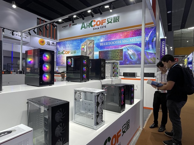 南方一部在本屆廣交會(huì)一期主要參展游戲電腦機(jī)箱產(chǎn)品,從入門(mén)級(jí)到高端游戲機(jī)箱齊全。部門(mén)在營(yíng)銷(xiāo)展示上采用一系列新穎的形式,展臺(tái)的主通道采用目前比較流行的魚(yú)缸游戲機(jī)箱作為看點(diǎn),用可藍(lán)牙連接手機(jī)和電腦的高端游戲機(jī)箱吸引客戶。為了突出參展效果,所有游戲機(jī)箱都裝上了RGB變色風(fēng)扇。多樣化的變色風(fēng)扇與南方二部的機(jī)械鍵盤(pán)吸引了大量客戶駐足觀看。消費(fèi)電子展6個(gè)攤位,突出游戲類(lèi)產(chǎn)品的裝修風(fēng)格,搭配大氣的門(mén)頭、顯眼的海報(bào)燈箱,使客戶在進(jìn)館時(shí)只需一眼就能夠鎖定目光。