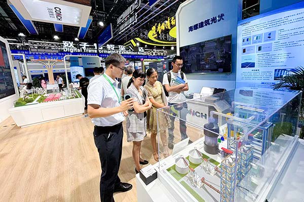 海螺集團展館圍繞產(chǎn)業(yè)轉型升級主題,聚集海螺新能源、新材料、數(shù)字經(jīng)濟產(chǎn)業(yè)鏈,通過沙盤展示、實物模型、視頻演播、互動體驗等多種形式,集中展示海螺實施創(chuàng)新驅動,推動產(chǎn)業(yè)高端化、智能化、綠色化發(fā)展的豐碩成果。海螺智能質量控制系統(tǒng)、供銷物流管控系統(tǒng)、袋裝水泥機器人自動裝車系統(tǒng)、安徽省外貿綜合服務平臺、安天智采招標采購電子交易平臺、全過程數(shù)字管理平臺,以及海螺新材全屋定制、海螺建筑光伏、海螺全釩液流儲能、海螺科創(chuàng)外加劑與工業(yè)制劑等悉數(shù)參展。