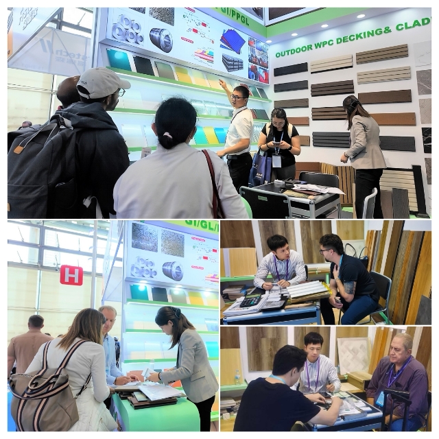 在建材展區(qū),同樣亮點紛呈。安糧以“適配性”和“實用性”贏得客戶認可。展區(qū)重點展示的室內地板、墻板及格柵等產品,可實現“墻地一體化”裝修,為客戶提供高效、整體的空間解決方案。其中,UV亮面墻板因安裝便捷省時的特點,成為現場咨詢量最高的產品之一。值得關注的是,“波浪瓦” 作為本次展出的核心亮點產品,憑借其卓越的防水與排水性能、隔熱與保溫、防火阻燃等特性,吸引了來自南美和非洲區(qū)域的多位客戶,目前已與阿根廷、津巴布韋和幾內亞等國客戶達成初步合作意向。