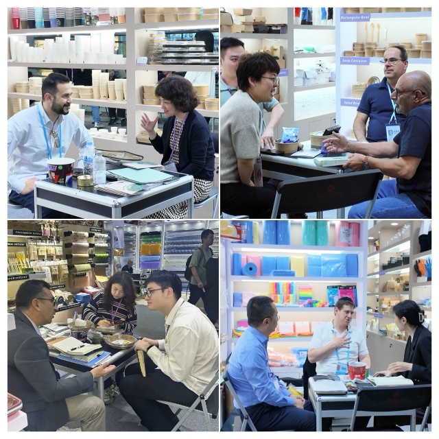 在家居展區(qū),開展首日便迎來一大波客戶咨詢。依托安糧20余年深耕一次性餐廚制品領域的專業(yè)積淀與行業(yè)洞察力,本次重點首發(fā)的紙質水果盒、紙制刀叉餐具等創(chuàng)新產品,憑借獨特的差異化設計迅速成為全場焦點之一。此外,展區(qū)同步展出的紙制品、全新塑料制品、竹木制品以及無紡布制品等核心品類,全面覆蓋海外市場多元化采購需求。在品質把控層面,安糧更是對標國際前沿標準——以展會熱門展品紙杯為例,已升級至EUDR(歐盟盡職調查法規(guī))標準,完全符合歐盟進口要求,截至目前,已與來自比利時、科威特、日本的客戶達成初步成交意向,為后續(xù)海外市場拓展奠定堅實基礎。