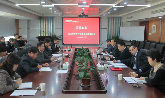 會(huì)議聽取了愛地農(nóng)業(yè)各部室負(fù)責(zé)人述職報(bào)告以及2013年部室工作計(jì)劃等匯報(bào),員工分別作了2012年工作小結(jié),并進(jìn)行了現(xiàn)場(chǎng)考評(píng)。