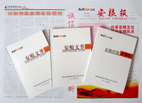 經(jīng)省新聞出版局批準(zhǔn),9月中旬,公司內(nèi)刊安糧報(bào)在試刊三期后正式創(chuàng)刊出版。國貿(mào)集團(tuán)范陽董事長專門發(fā)來賀信,對(duì)安糧報(bào)創(chuàng)刊表示祝賀。同時(shí),由辦公室編印的包括上級(jí)領(lǐng)導(dǎo)、安糧高管層和基層員工在公司網(wǎng)站發(fā)布的文章匯編——《安糧文萃》(上下冊(cè))、內(nèi)容包括各子公司三年來重大事項(xiàng)的資料記錄——《安糧控股大事記》,也印發(fā)至各單位。