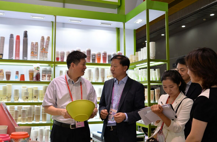省商務(wù)廳張箭廳長(左一)巡視公司展位