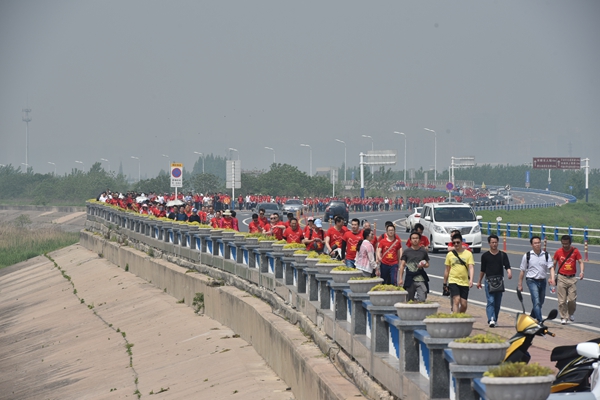活動分徒步、騎行兩個項目,以濱湖新區(qū)渡江戰(zhàn)役紀(jì)念館為起點,自西向東、環(huán)巢而行,沿途先后歷經(jīng)肥東縣、巢湖市、廬江縣、肥西縣、濱湖新區(qū)。第一階段徒步毅行由解放碑出發(fā),行程10公里,參與人數(shù)700余人,12點前后陸續(xù)抵達半島碼頭接力點。第二階段全程150公里,由2支自行車騎行大隊與4支徒步大隊組成。在第一階段隊伍全部抵達后,第二階段隊伍中午12:30騎行隊伍出發(fā),按照45km/棒開始接力。22日晚7時許,騎行隊伍抵達預(yù)定地點。19:30,徒步隊伍接力開始出發(fā),挑戰(zhàn)夜行,每15公里交接一棒。22日夜的巢湖岸邊,黑夜如墨,風(fēng)大雨急,氣溫驟降,四組徒步隊員們頂風(fēng)冒雨,不畏艱難、相攜相伴,堅毅前行,按時完成既定里程。