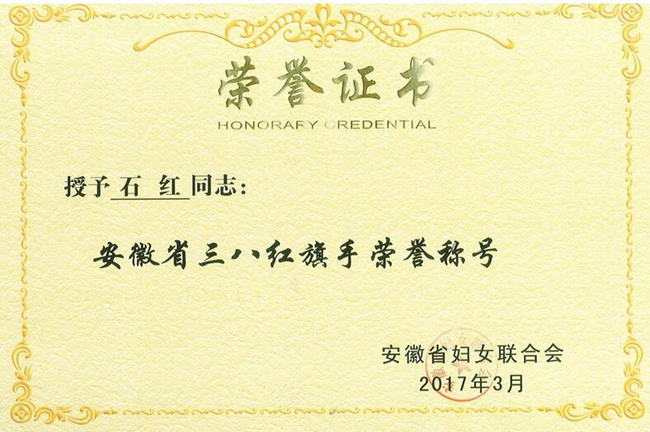 “安徽省三八紅旗手”榮譽(yù)證書