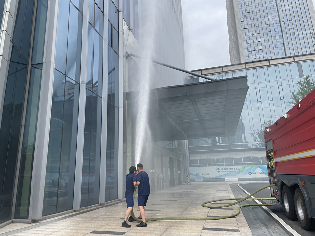 6月24日下午3時,消防應(yīng)急演練總指揮下達(dá)演練開始指令。隨著煙霧彈在辦公樓內(nèi)拋擲,煙霧觸發(fā)安糧中心辦公樓火警警報,頓時消防警報和消防警鈴響起。隨后各小組迅速按照部署展開滅火救援行動,消防和應(yīng)急救援隊員有序引導(dǎo)員工緊急疏散撤離至避難層,緊接著包河區(qū)應(yīng)急救援大隊消防救援車輛到達(dá)現(xiàn)場,開展了火情偵查、外圍滅火等系列滅火救援行動。整個演練過程中,各小組配合默契、分工有序,圓滿完成了緊急報警、警戒疏散、醫(yī)療救護(hù)和滅火救援等演練環(huán)節(jié),及時排除了火災(zāi)險情,有效達(dá)到了演練目的和預(yù)期效果。