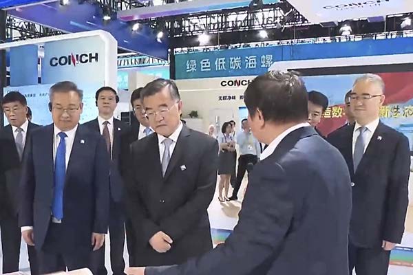 開幕式后,全國人大常委會副委員長張慶偉、省委書記梁言順、省長王清憲一行巡館,查看了海螺集團展館和海螺建筑光伏大道,聽取了海螺加快產(chǎn)業(yè)轉型升級,推動企業(yè)高質量發(fā)展的情況介紹。
