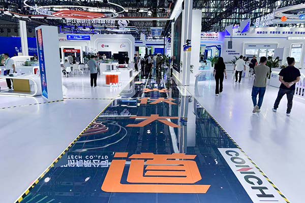 海螺集團展館圍繞產(chǎn)業(yè)轉型升級主題,聚集海螺新能源、新材料、數(shù)字經(jīng)濟產(chǎn)業(yè)鏈,通過沙盤展示、實物模型、視頻演播、互動體驗等多種形式,集中展示海螺實施創(chuàng)新驅動,推動產(chǎn)業(yè)高端化、智能化、綠色化發(fā)展的豐碩成果。海螺智能質量控制系統(tǒng)、供銷物流管控系統(tǒng)、袋裝水泥機器人自動裝車系統(tǒng)、安徽省外貿綜合服務平臺、安天智采招標采購電子交易平臺、全過程數(shù)字管理平臺,以及海螺新材全屋定制、海螺建筑光伏、海螺全釩液流儲能、海螺科創(chuàng)外加劑與工業(yè)制劑等悉數(shù)參展。