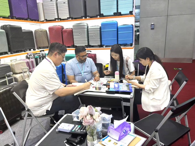 箱包展區(qū)推出70余款不同材質和設計的產品,如超輕材質PP拉桿箱、ABS拉桿箱、旅行布箱等。其中PP拉桿箱因其高性價比,受到歐洲、中東、南美客商青睞。參展期間,業(yè)務團隊根據客商反饋,及時調整展品布置,確保每日展出的箱包品類與陳列形式持續(xù)更新,大大提升了客戶體驗。