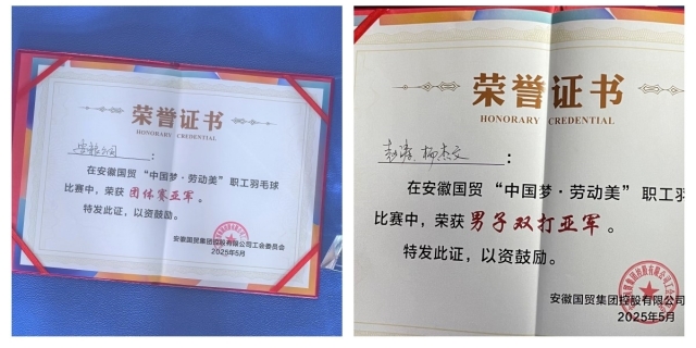 在5月27日落幕的 “中國夢?勞動美” 安徽國貿(mào)職工羽毛球賽中,安糧集團(tuán)代表隊團(tuán)結(jié)協(xié)作、奮力拼搏,奪得團(tuán)體亞軍。來自安糧新鏈的楊杰文與安糧期貨的趙濤在單項賽中斬獲男子雙打亞軍,展現(xiàn)出安糧員工昂揚(yáng)向上的精神風(fēng)貌。